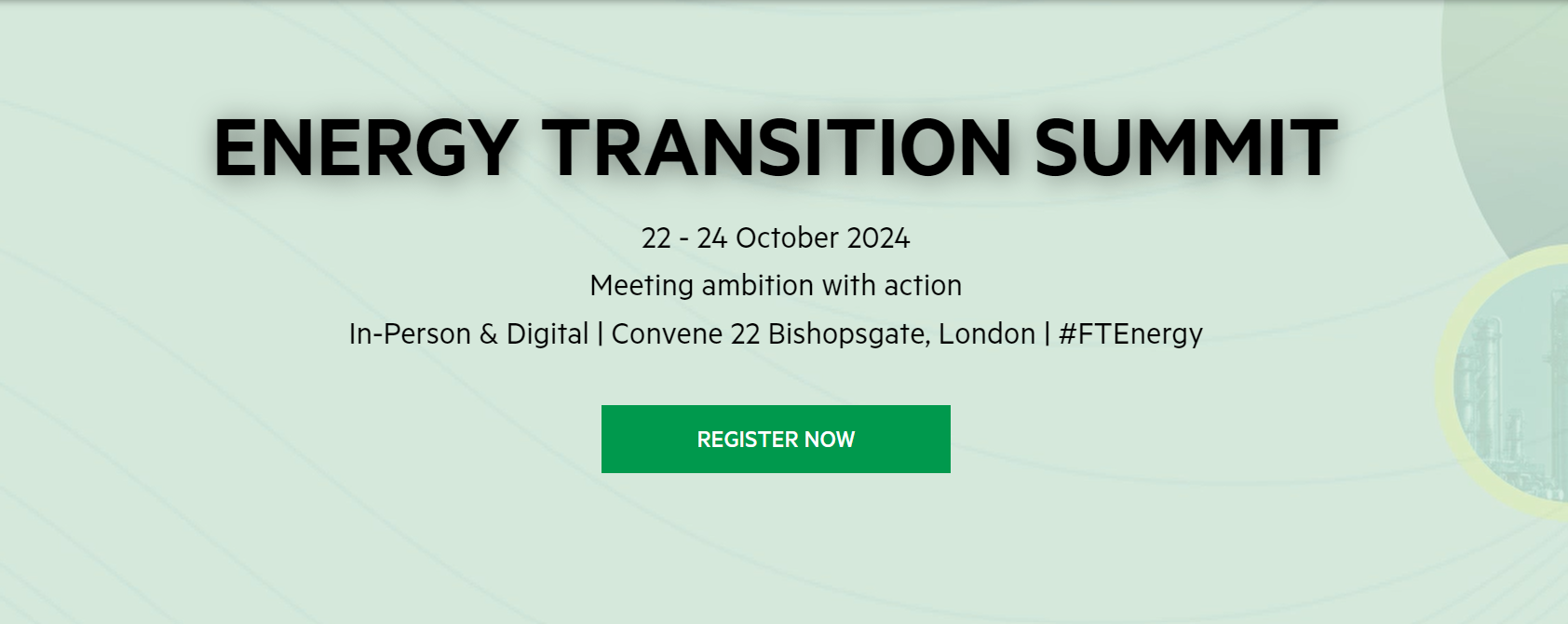 The Financial Times' Energy Transition Summit 2024, taking place from 22-24 October, will gather global energy leaders to discuss the path towards a sustainable and secure energy future. The summit will cover key topics such as decarbonisation, energy security, and financing clean energy projects, with a focus on addressing geopolitical challenges and seizing green economy opportunities.